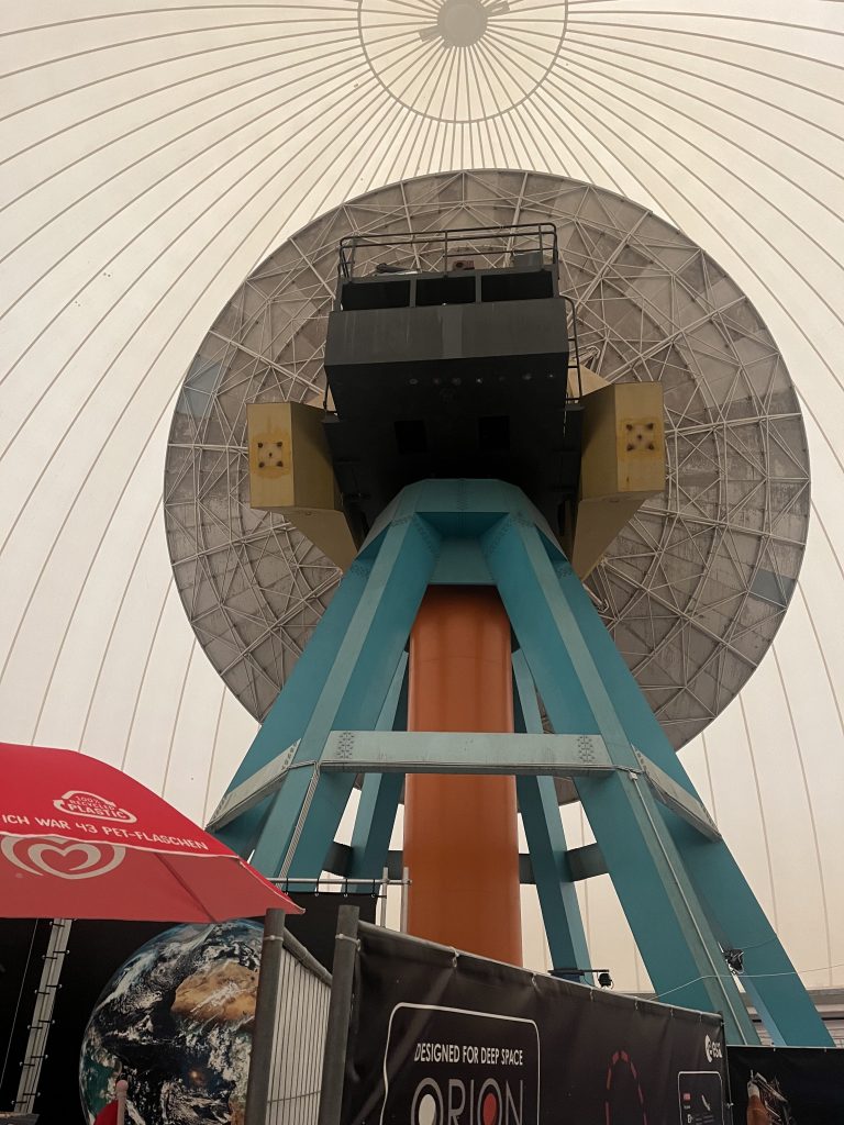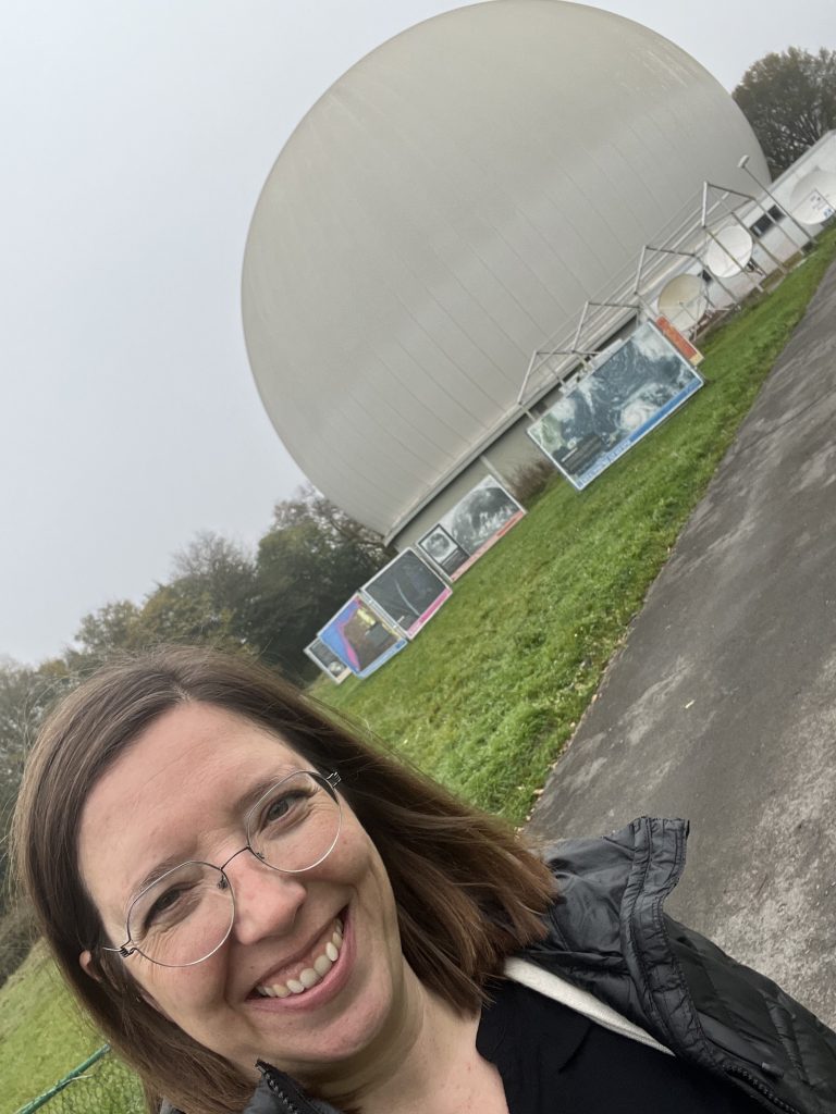 Dann ging meine Recherche-Reise weiter nach Bochum-Sundern: Hier habe ich von Nicole Sehrig vom IUZ Bochum eine Führung durch die Sternwarte – und auch ein bisschen durch die Geschichte der Bochumer Weltraumforschung – bekommen. Zum ersten Mal in meinem Leben habe ich eine so riesige Parabolantenne gesehen. Wirklich beeindruckend!